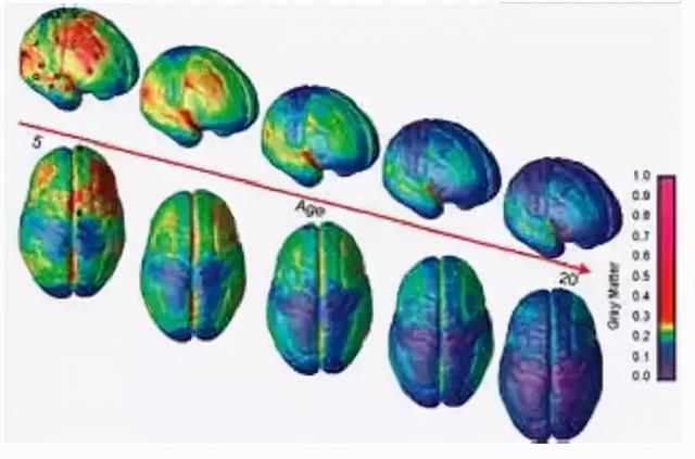 图中的颜色:代表大脑的发育程度,也可以说是活性程度。