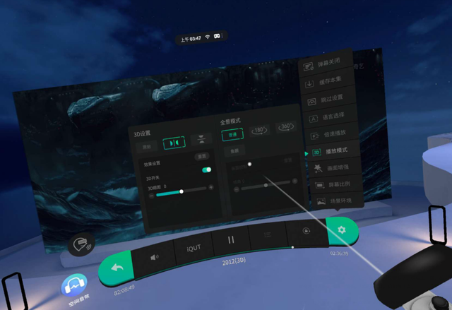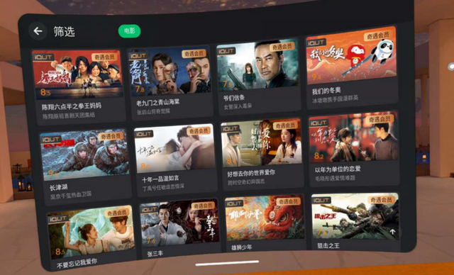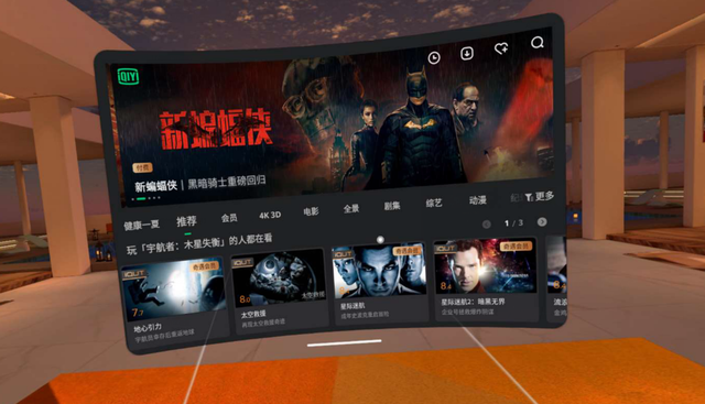 奇遇Dream VR一体机可以带来媲美影院的观影体验,还别说,真有那感觉与视觉!360°场景除了巨幕影院,还有普通影院、宇宙星空和室外天台、球场。