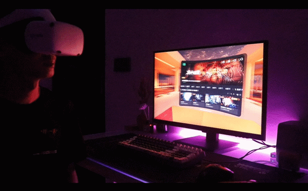 注:为了全方面展示体验内容,笔者将双目所见的内容投屏至显示器