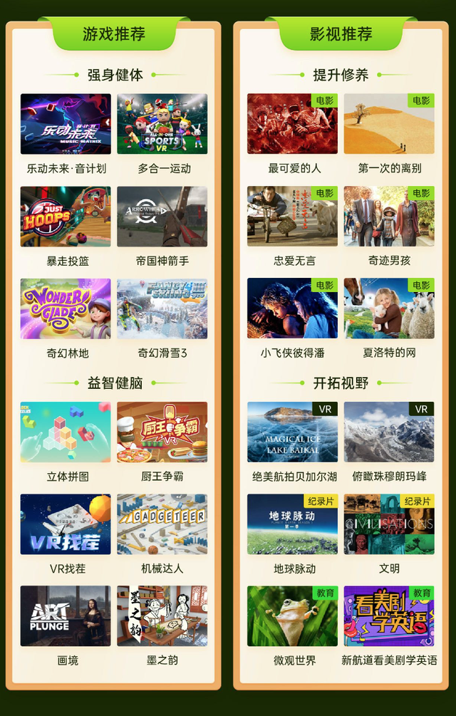 孩子们对新奇的物件都会倍感兴趣,除了看动画片之外,我个人觉得奇遇Dream VR一体机更值得提到的是,奇遇有大量适合孩子体育运动娱乐内容,可以帮助孩子锻炼身体,在玩游戏中就能起到有氧运动。