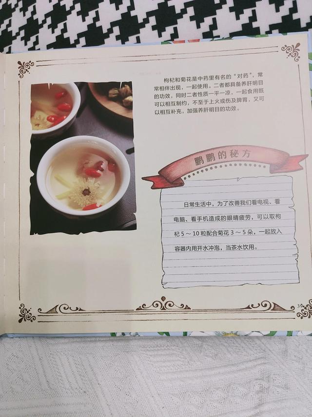 在故事的最后,书中还介绍了枸杞和菊花的妙用,正是神兽的魔药中的两味,两者叠加使用养肝明目的效果。